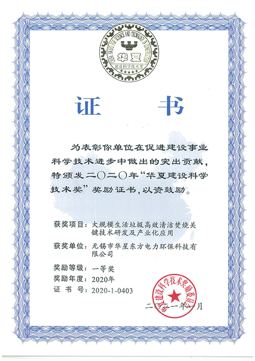 華夏建設(shè)科學(xué)技術(shù)一等獎(jiǎng)證書