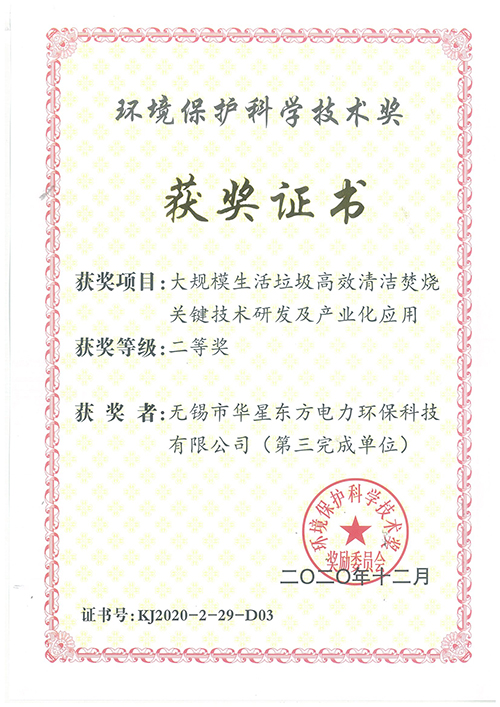 環(huán)境保護(hù)科學(xué)技術(shù)獎(jiǎng)二等獎(jiǎng)證書
