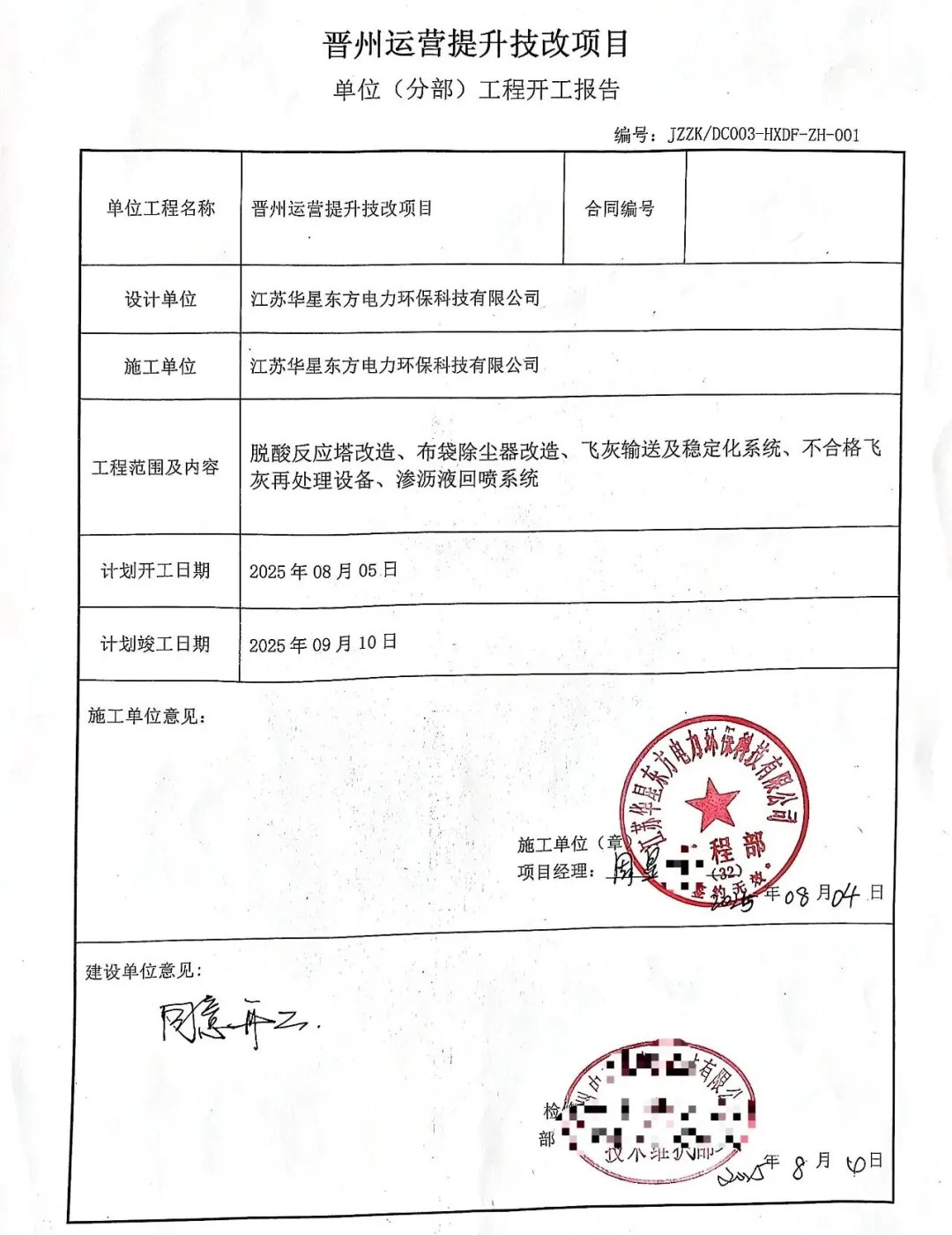 華星東方承建的河北省石家莊市晉州市生活垃圾焚燒發(fā)電提升技改項(xiàng)目煙氣凈化工程于2025年08月05號開工建設(shè),于08月27號已安裝完成通過初步驗(yàn)收。